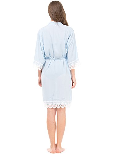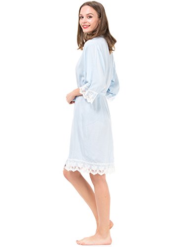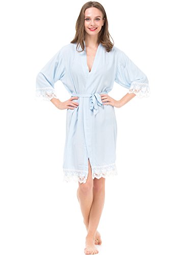 Mr&Mrs Right Women's Cotton Robe for bride and Bridesmaid with Lace Trim, light blue, X-Small / 0-4