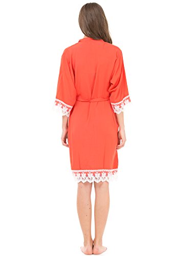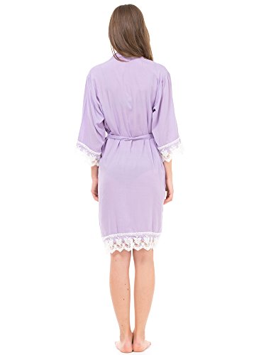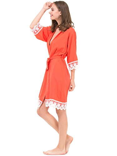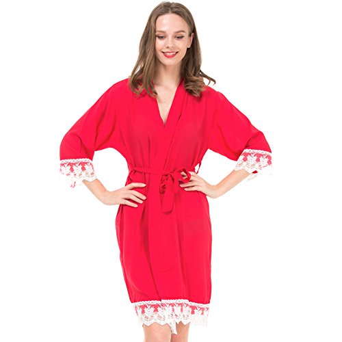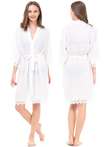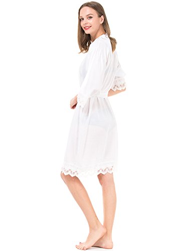 Women's Cotton Robe for bride and Bridesmaid Kimono with Lace Trim 3/10 Seelves Plus Size