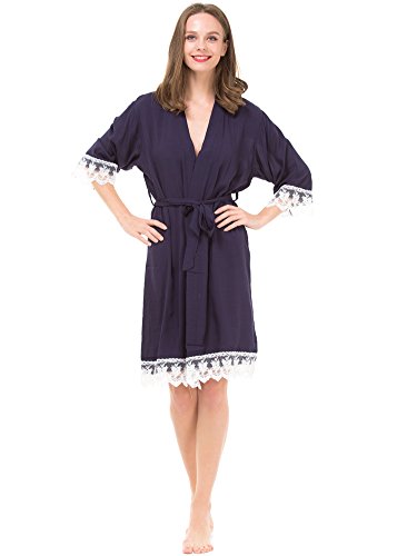 Women's Cotton Robe for bride and Bridesmaid Kimono with Lace Trim 3/11 Seelves Plus Size