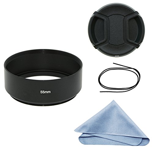 SIOTI Camera Standard Focus Metal Lens Hood + Cleaning Cloth + Lens Cap for Nikon Canon Sony Fuji Pentax Sumsung Leica Standard Thread Lens (55mm)
