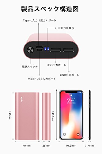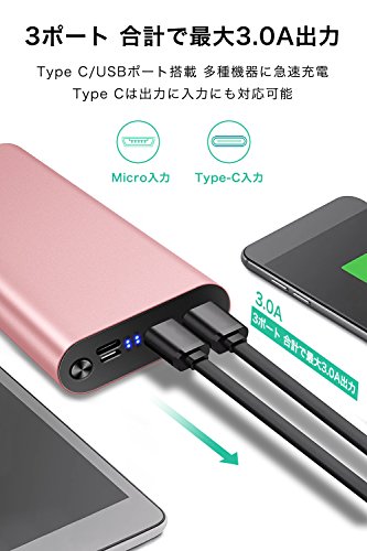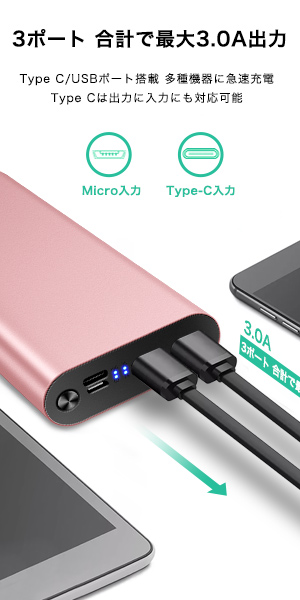 Type-Cポートは出力・入力両対応、入力2Aのユニークなデザインにより、入力1Aのモバイルバッテリーより2倍のスピードでお使いのデバイスに充電でき、もっとの充電必要時間が節約できます。