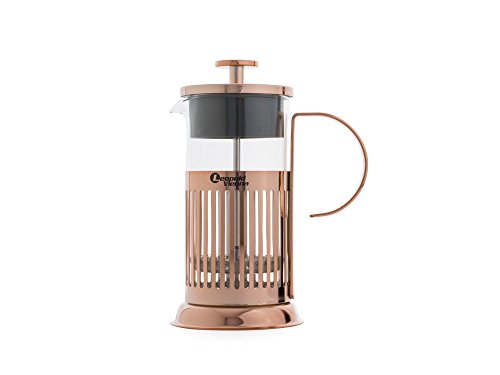 -. Feature : French press has a 1.5 cup capacity, allowing you to create and enjoy the perfect amount of coffee / Constructed out of high quality glass that has an attractive and lusterious copper finish / Ergonomic shape of the handle allows french press to fit comfortably in your hand / Spout is designed for easy pouring, so you can get every last drop into your mug / Makes a great gift for coffee enthusiasts or even a house warming gift for any new homeowner