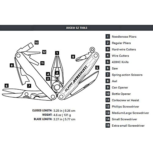 OUTSIDE-ACCESSIBLE TOOLS: The Juice S2 features tools that are accessible while the tool is in its folded or closed position, mimicking the functionality of a pocket knife.