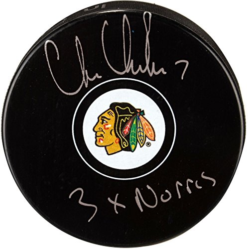 Chris Chelios Chicago Blackhawks Autographed Hockey Puck with 3x Norris Inscription - Fanatics Authentic Certified