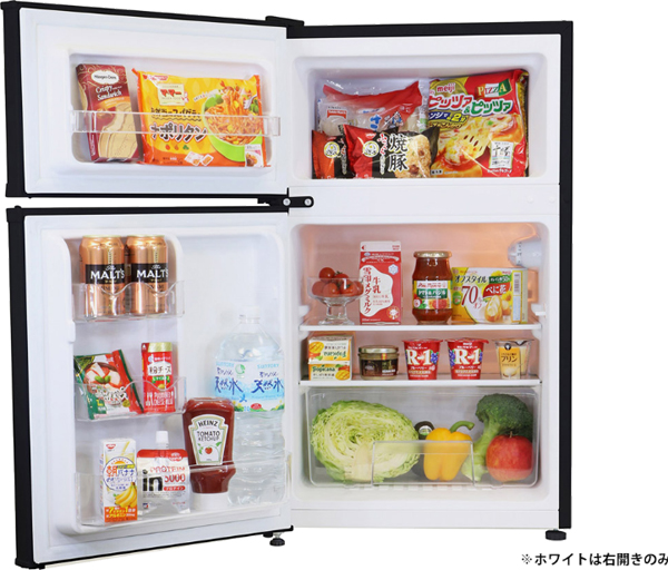 ●ワンルームや寝室、オフィスにちょうどいいコンパクトボディに26Lの冷凍室・64Lの冷蔵室を搭載。棚やポケットを付け替えることであらゆる食品や調味料を収納できます。