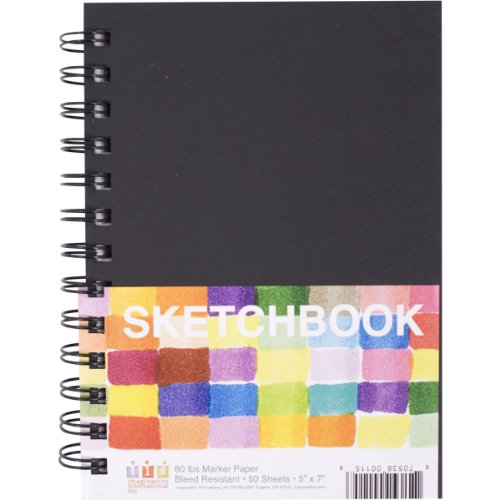 Spiral-bound sketchbook is landscape oriented with binding on short side. Inside is thick, all-purpose 70 lb. white paper. Great for markers, watercolor, and other mixed media work. Paper is bleed-resistant. 50 sheets.Feature