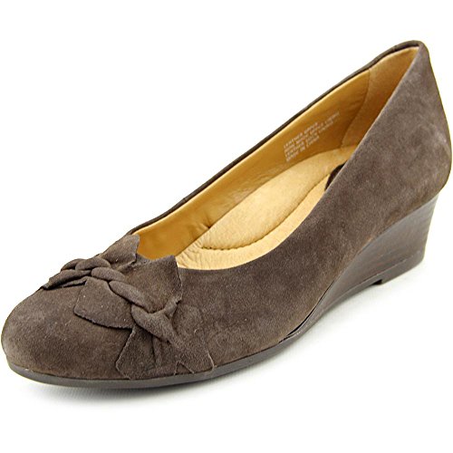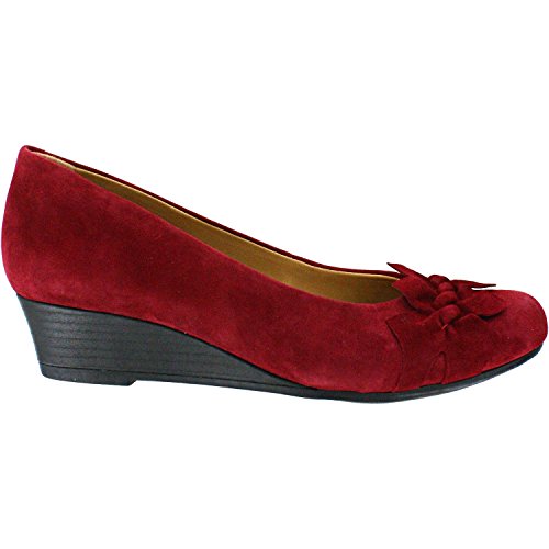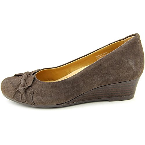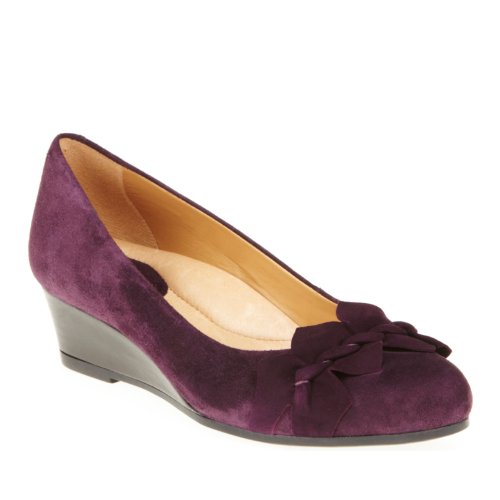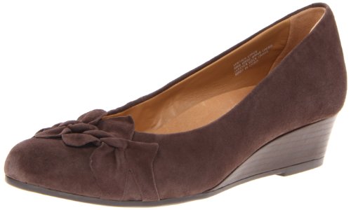 From Earth to you - Earth Women's Teaberry Pumps have landed with cushioning and support right where you need it! Expect some admiring glances when you step out in this low wedge pump. The upper is crafted in quality suede and adorned with a unique twisted detail across the toe. The leather-wrapped, foam footbed works with the multi-density latex cushioning in the midsole to provide heel-to-toe softness. You get even more comfort with dual foam padding in the heel that helps displace shock. Plus, a latex arch insert contours to the shape of your foot to help support a natural walking motion.Feature