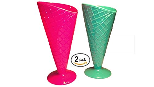 ★ AMAZING - Waffle Bowl - Rootbeer Float Glasses - Must Have Fun Ice Cream Sundae Waffle Cone Cup Set of 2 - Hot Pink and Aqua Teal - Ice Cream Dishes