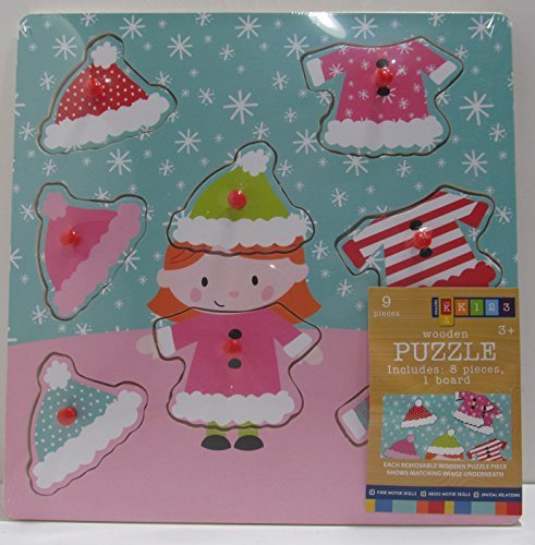 -. Title : 9 Piece Wooden Puzzle - "What To Wear Out in the Snow?"
