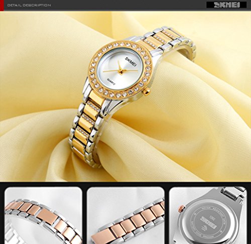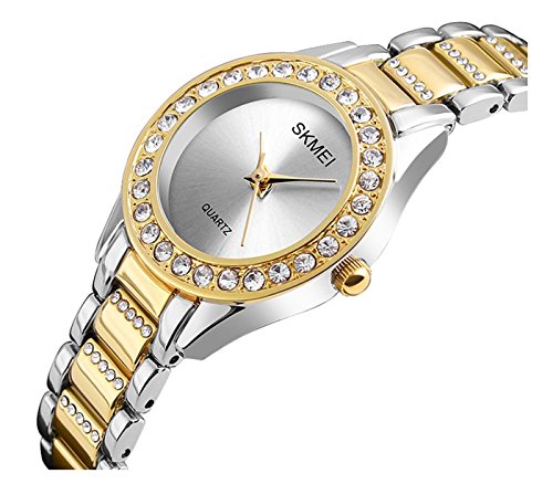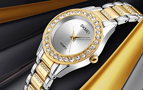 Fanmis Luxury Casual Alloy Quartz Women Rhinestones Ladies Waterproof Gold Wristwatch