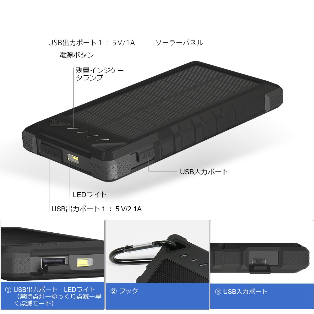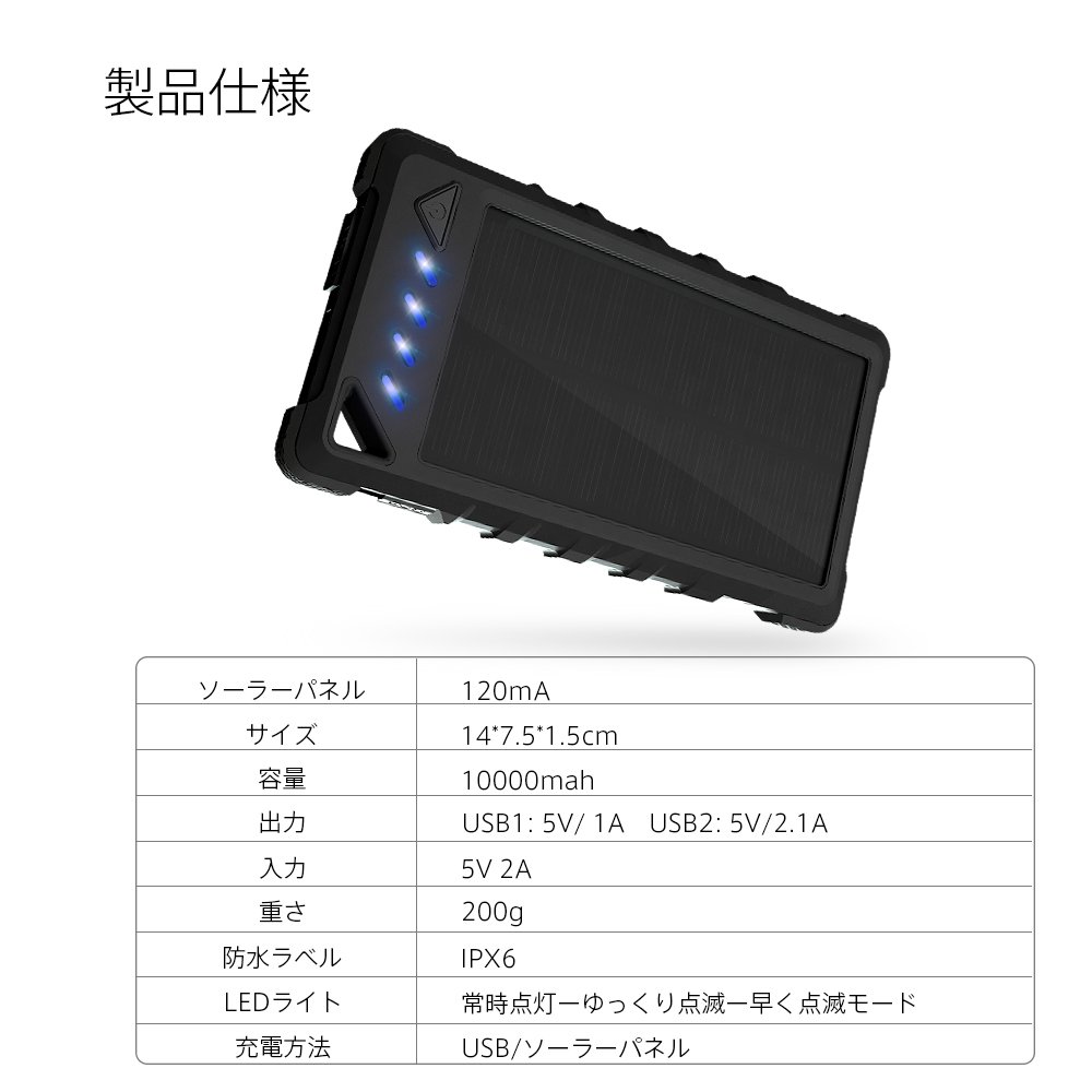 Charging time: 10h (USB) solar panel, depending on the weather conditions