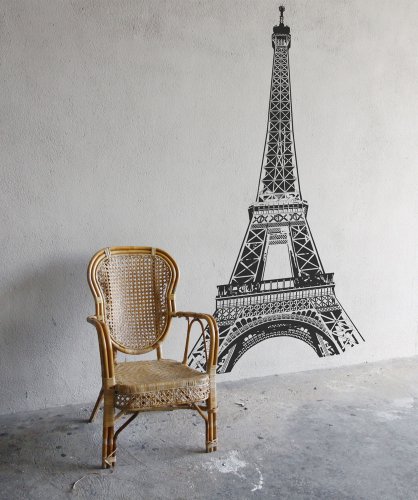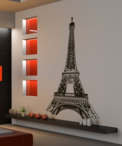 Paris France Eiffel Tower Wall Decal Sticker Stickerbrand Famous Landmarks Vinyl Wall Art, 72in x 40in. Black Color