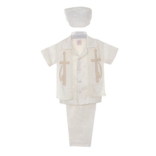 - Feature : Shantung silk Guayabera shirt / Matching pants and cross embroidered stole / A cute Christening set for your baby boy from Rain Kids / Matching hat is included
