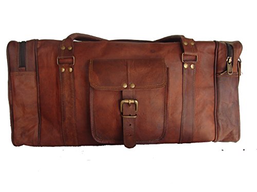-. Brand : Shivam leather craft -. ClothingSize : 24" -. Department : unisex-adult -. Feature : Imported / The bag is made up of naturally tanned genuine goat leather. / Adjustable shoulder Strap , Big main compartments for clothing /travel and sports gear etc, Two Side pockets for accessories etc. Front pocket for cash /mobile / 100% genuine leather Has sturdy canvas inner lining for long life. 2 Side pockets Coneniet access to Misc. items. Front pocket . 24 Inch. main compartment big enough for all need for gym, weekend trip and travel -. Model : 54-$P -. ProductGroup : Apparel -. ProductTypeName : LUGGAGE -. Size : 24" -. Title : Shivam leather craft Adult Handmade Vintage Duffel Travel Gym Yogo Bag 24"