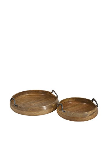 IMAX 71730-2 Vallari Round Wood Trays, Set of 2