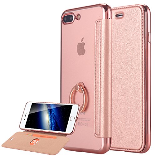 -. Title : iPhone 7 Plus Case, LONTECT Ultra Slim PU Leather Folio Flip Case Card Slot with Clear Soft TPU Back Cover Built-in Ring Grip Holder for Apple iPhone 7 Plus