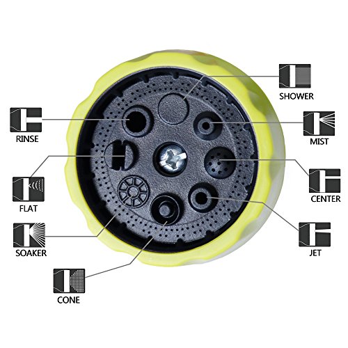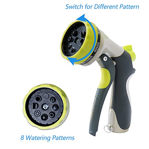 - [8 WATERING PATTERNS] : Mist, Shower, Rinse, Flat, Cone, Jet, Center, Soaker.3/4" metal connectors,Fits all Standard Garden Hoses,Ideal Tool for Car Washing, Garden Watering, Pet Showering, House Cleaning and so on