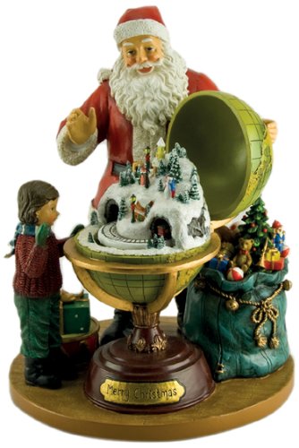 MusicBox Kingdom 53045 Santa and a Child are Looking at The Scene Inside The Globe Music Box, Plays 8 Different Melodies