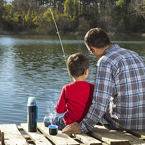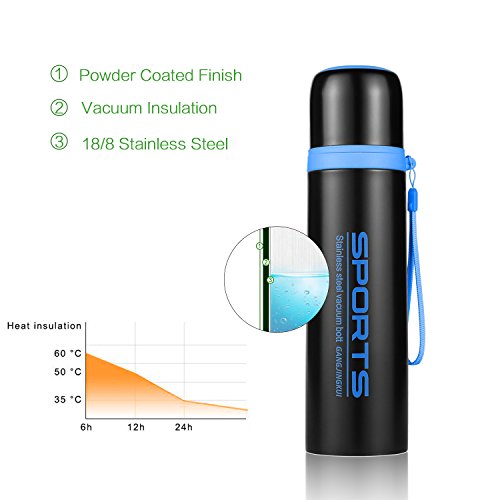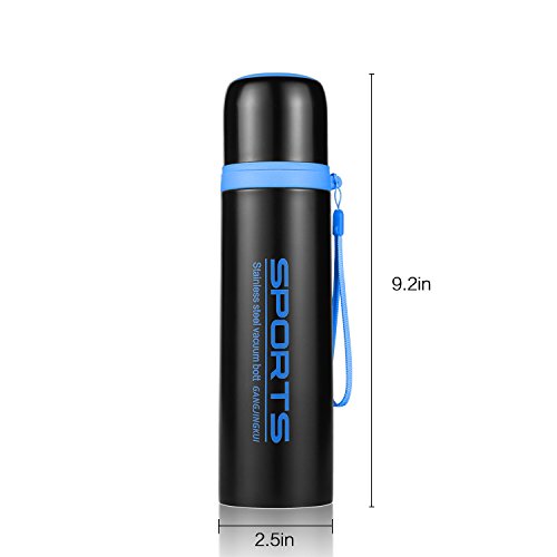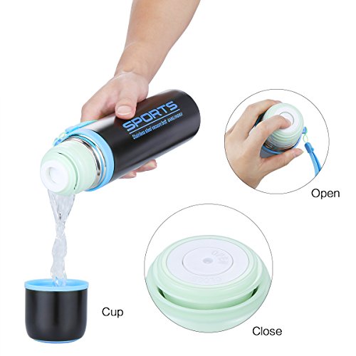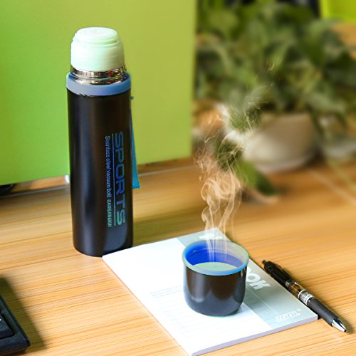【Unique Design】This water bottle integrated the cups on the cap of the bottle, which making it is easy to drink hot water on work,fishing,picnics or road trips.