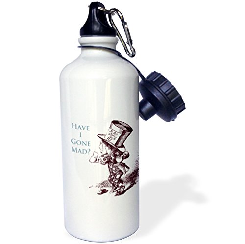 3dRose wb_110410_1 Mad Hatter Have I Gone Mad Alice in Wonderland Sports Water Bottle, 21 oz, White