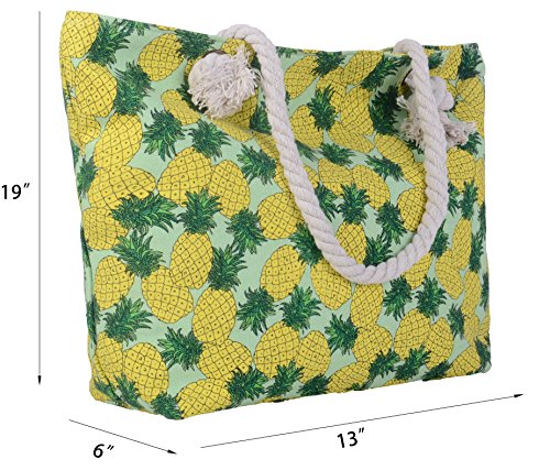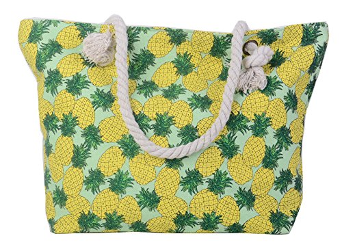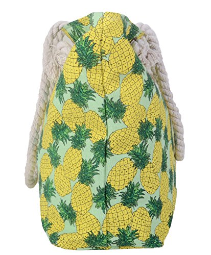 Pulama Women Beach Tote Canvas Shoulder Bag Strip Anchor Summer Handbag Top Handle Bag Straw Beach Bag (Pineapple)