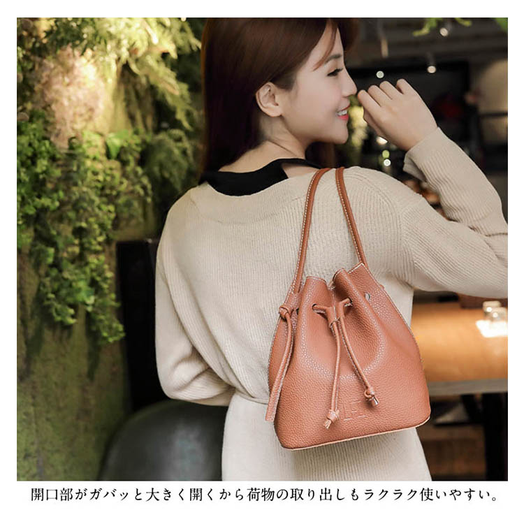 | 街中でもじわじわと見かけることがふえてきたこのバッグ♪丸いフォルムの大人可愛い巾着式ショルダーバッグの登場!全体のころんとした丸みと、上部のキュッと絞られたアクセントが独特の可愛らしさを醸しだすんです。開口部がガバッと大きく開くから荷物の取り出しもラクラク使いやすい。小さめミニバッグでもお出掛けに必要な物は入る見た目以上の収納力!!カラーバリエーションでおしゃれにメリハリをプラス。 | |