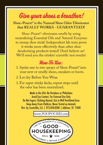 -. Feature : Stomp Shoe Odors! / Shoe Odor Eliminator / Made in the good ole USA / Perfect gift for anyone who wears shoes! / Poo-Pourri items also available in bathroom sprays, diaper deodorizers and sweat eliminators