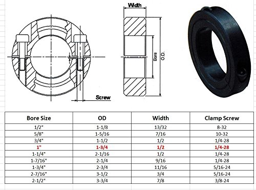 1" Bore Double Split Shaft Collar Black Oxide Set Screw Style (4 PCS)