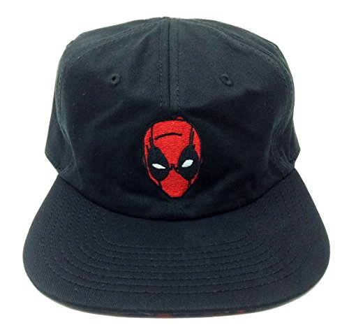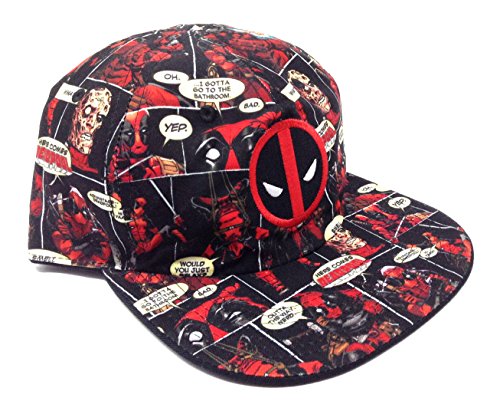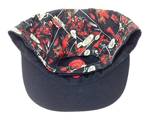 Binding : Apparel Product Description Marvel Comics Reversible Deadpool Adjustable Hat. Reversible cap features a two print design, choose from the solid black with 3D ebroidered Deadpool face on one side and a vivid sublimated all over print comic panel design on the other featuring the always classic character logo on a slouch unstructured adjustable flat bill hat. 0