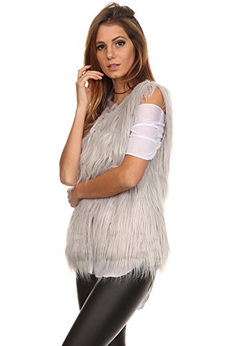 Faux fur is perfect for all those colder days, and this vest is the perfect piece for all those days and the days in between as it keeps you warm but can keep you cool from being sleeveless. Add this beauty to your wardrobe and turn any top into a fashionable masterpiece. DETAILS (Measured from Small): - Bust: 34" - Across Shoulder: 14" - Waist: 36" - Hip: 38" - Body Length: 24.5" - Color: Grey, Ivory, Pink 0 |