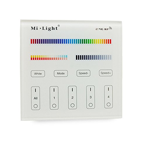 Mi.Light Wireless 2.4G RF 4-Zone Wall-Mounted Smart Touch Panel Remote Controller for LED Light Bulb Spotlight Downlight Flood Light of Mi-Light RGB/RGBW/RGBWW/RGB+CCT Series (Battery Powered)