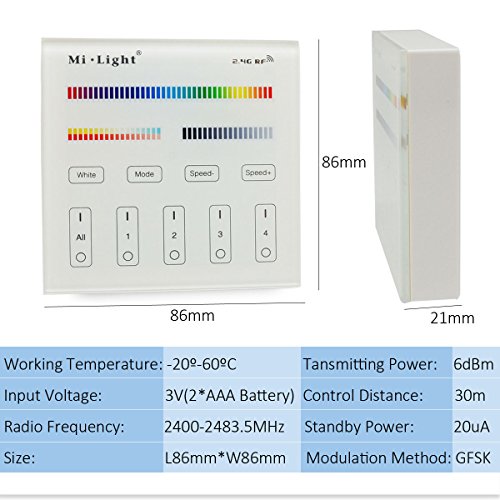 Smart Panel Remote Controller: It is a newly developed remote controller. No Wiring,Pasting,Moveable,easy operation,ONLY work with Mi.Light RGB/RGBW/RGB+CCT series.