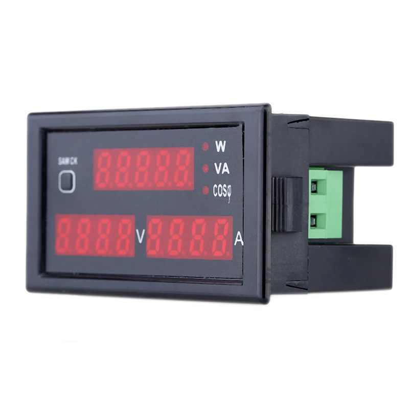 2. Monitor: voltage and current display 4-digit red 0.31-inch LED digital tube, active power, apparent power and power factor 5 red 0.31-inch LED digital tube.