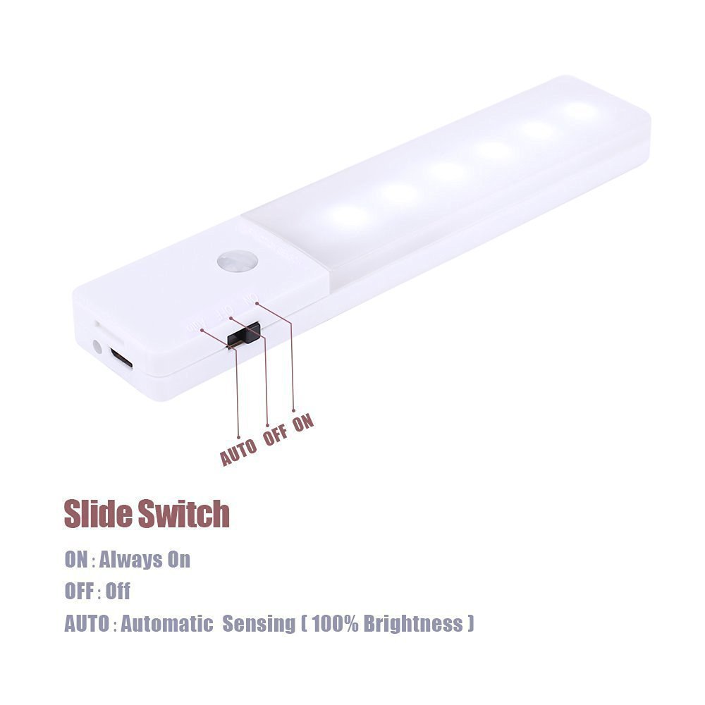 - Portable Sleek design.3 modes settings via the ON/AUTO/OFF switch; ON for always light when you need, like reading or working; AUTO for motion-sensitive mode. OFF- saves energy and battery life.