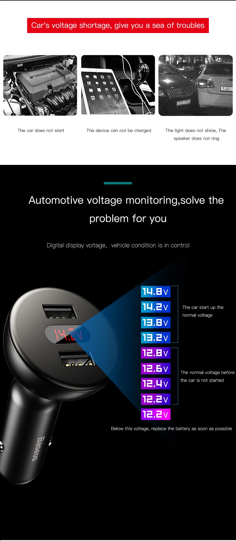 Usage:360 degree rotation display digital car charger