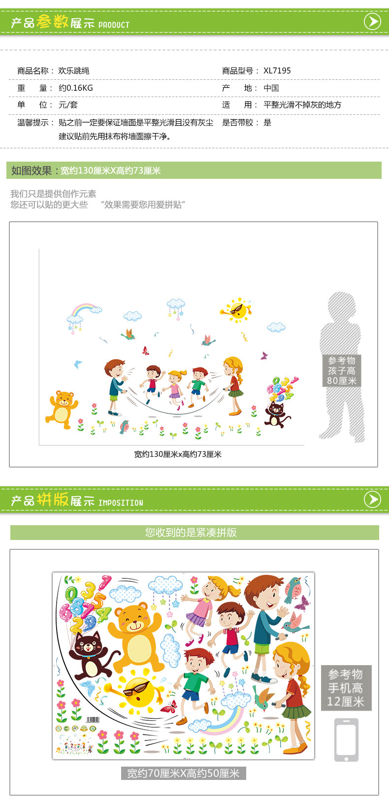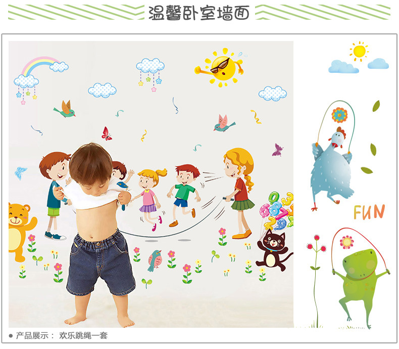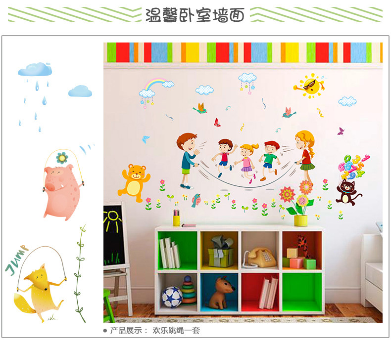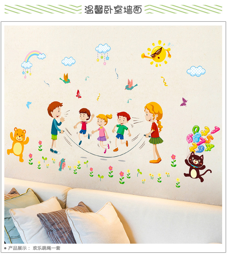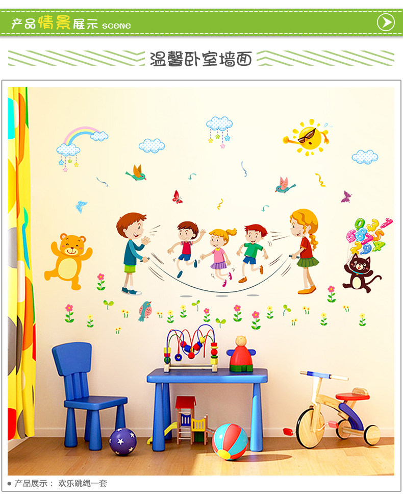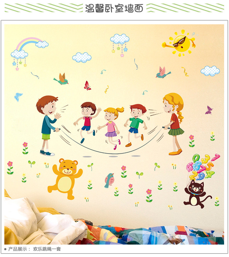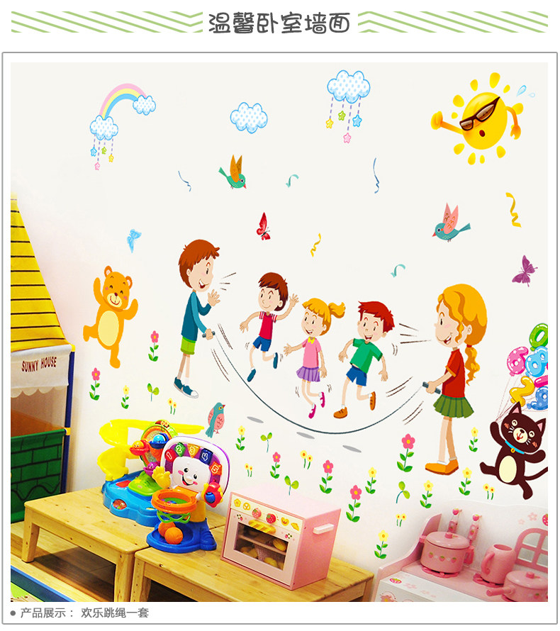 欢乐跳绳墙贴宝宝卧室儿童房间装饰品幼儿园墙壁墙上贴画墙纸自粘