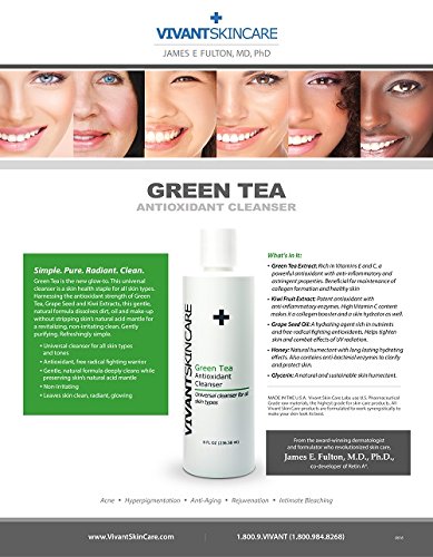 -. Binding : Health and Beauty -. Brand : Vivant Skin Care -. Label : Vivant Skin Care -. Manufacturer : Vivant Skin Care -. ProductGroup : Beauty -. ProductTypeName : BEAUTY -. Publisher : Vivant Skin Care -. Studio : Vivant Skin Care -. Title : Vivant Skin Care Green Tea Antioxidant Cleanser
