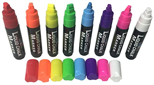 Color Liquid Chalk Markers - Extra Wide 10mm Tip - Neon Fluorescent Colors. Reversible Tips. Mega 8 Pack. Chalkboard - Glass - Tile - Plastic - Metal - Posters.
