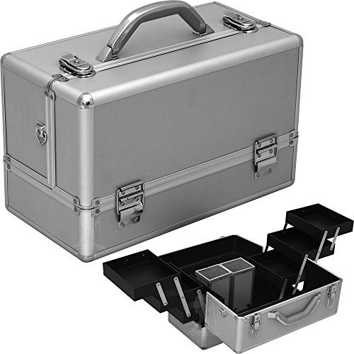 Hiker HK3201PPSL SilverMatte3-Tiersaccordiontraysprofessionalcosmeticmakeuptraincraftstorageorganizercasewithtwobrushholder-HK3201, Silver