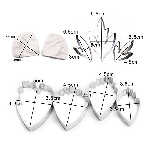 ✿What does it contains: 3pcs stainless steel leaf cutters and 4pcs petal cutters, 1pair silicone petal veiners