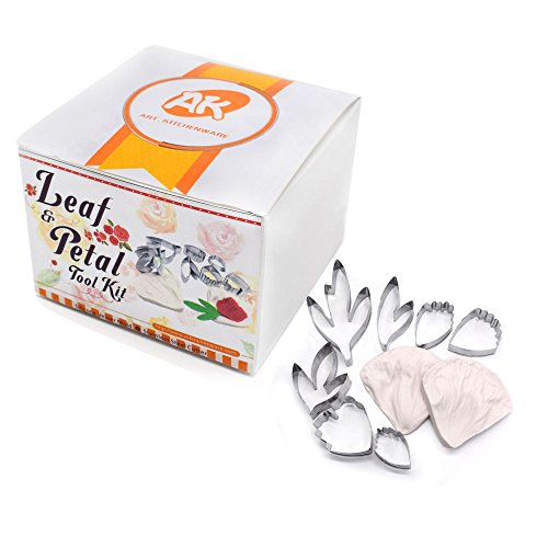 AK ART KITCHENWARE Leaf and Flower Tool Kit 7Pcs Stainless Steel Peony Cutter 2 Pcs Silicone Veining Mold Veiner Petal Texture Tool Sugar Flower Making Tool A356/A339&VM060