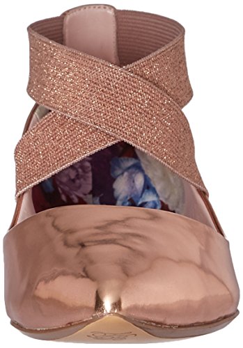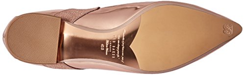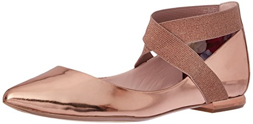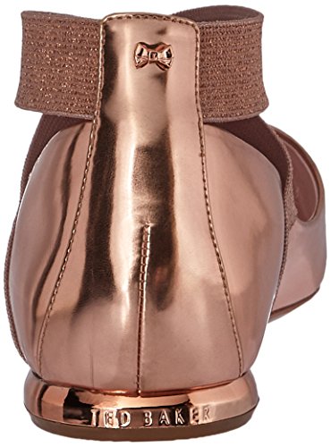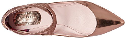 Studio : Ted Baker Publisher : Ted Baker Binding : Apparel Product Description Chic flat point with a metallic faceted heel. slender elastic crosses over the vamp to flatter the foot. in a range of trend-led colours, metallic branding and printed back counters these are easy show-stopping styles. the ortholite padding makes these points an easy all-day shoe. 0