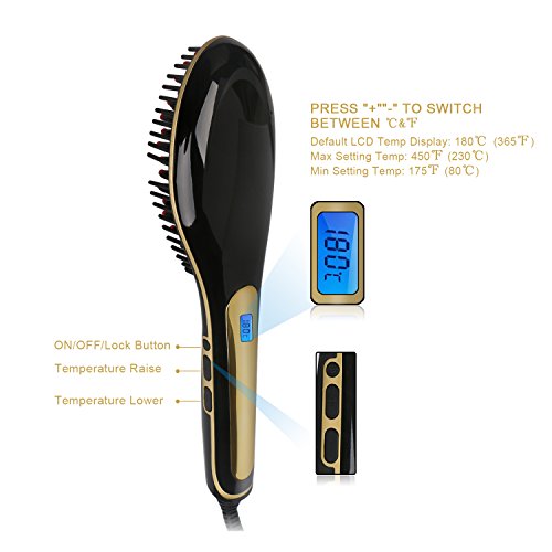 - Temperature ranges between 176-450℉, heating up nicely within minutes, manually adjustable for different types of hair texture and switchable between Celsius and Fahrenheit, also able to lock the temperature buttons to prevent heating up and down for heating evenly.