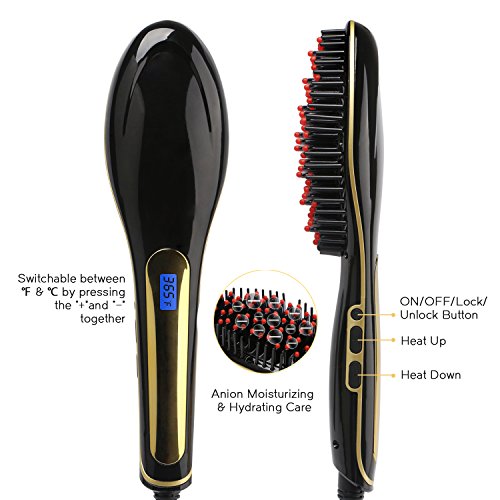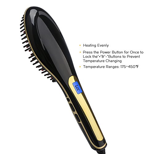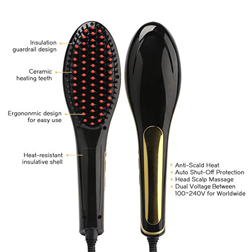 - Anti-scald and Hair Scalp Massage: Its bristles have black plastic teeth guards around the ceramic teeth, on the end of which has a red plastic guard to prevent burns, while also the rubber red balls on tips to massage scalp as straightening hair. The ceramic teeth are slightly longer and shorter to heat every hair and pull them throw the brush.