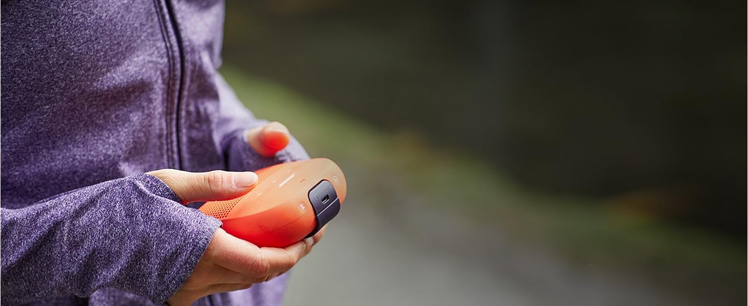 Waterproof speaker from the Inside out (Ipx7 rating), with soft, rugged exterior, resists dents, cracks and scratches