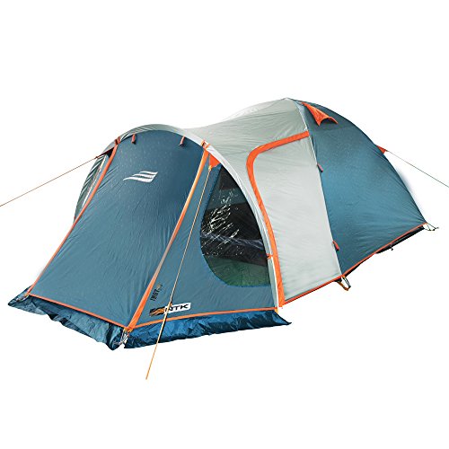-. Feature : SPACIOUS EUROPEAN DESIGN 3 to 4 Person (aduls/kids), 2 Doors (inner and outer), 3 vents, super roomy independent vestibule area with detachable floor (floor not connected to rainfly) is perfect for gear and pets. Tent Designed to offer independent water tight sleeping area and extra space in vestibule with modern curved shape window to enjoy the view even when it is raining. NEW ONE YEAR CELEBRATION FREE PROMO GIFT INCLUDED: LED STORM STRETCH LIGHT WITH BATTERY VALUED AT USD14.99. / FULL COVERAGE RAINFLY: Double layer 190T polyester laminated with polyurethane 2500 mm water column, partially aluminum, heat-welded PU seam sealed and UV protection. Inner tent: Large door with full size mosquito mesh for great views and ventilation. Roomy utility pocket for storage. Large mesh roof vents provide extra ventilation. / FRAME: Nano-Flex technology, extra thick white pure fiber glass poles interconnected with high performance elastic and metal parts made of double gold plated steel. Pin-and-ring system for easy and quick setup. Season 3. / MOSQUITO MESH: Ultra-thin NO-SEE-UM polyester mesh keep you safe from the smallest insects and mosquitos. Inner Material: 190T breathable Polyester for maximum comfort and ventilation. Keeps you comfortable and protected under heat, rain and wind. / FLOOR MATERIAL AND DESIGN: Heavy duty anti-fungus seamless polyethylene with inner silver coated layer keeps you dry and protected enhanced by the unique element barrier bathtub-style construction (you won't wake up in a puddle!). Security: Meets CPAI-84 flammability requirements. Heavy duty carry bag with ID label to personalize your tent.