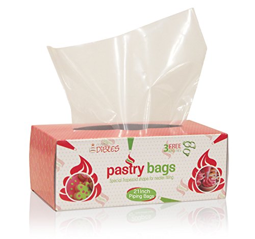 Disposable Pastry Bags, Extra Large - 21 Inch. 80 count Heavy Duty in dispenser box. Microwave safe by CiE. 3 Free Piping Bag Ties included!