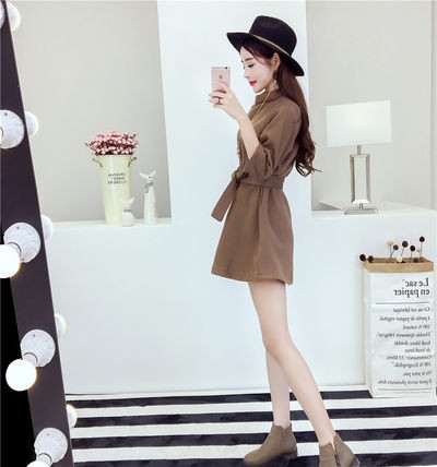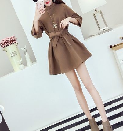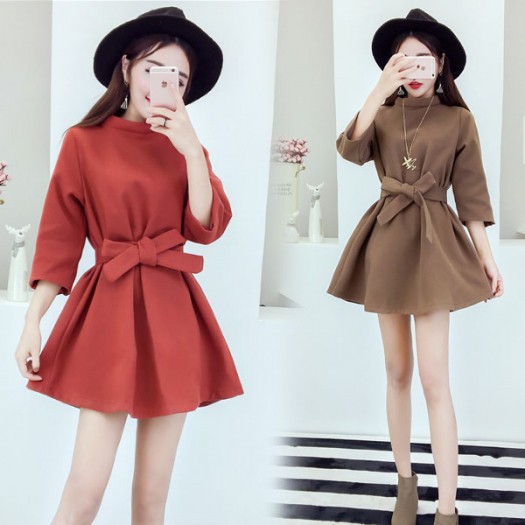 ウエストリボンが可愛らしい、ミニ丈ハイウエストワンピース。