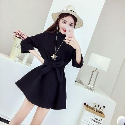 パーティードレス ミニ丈 ワンピース ウエストリボン ハイウエスト ボトルネック シンプル 大人 可愛い お呼ばれ デート drgz2563