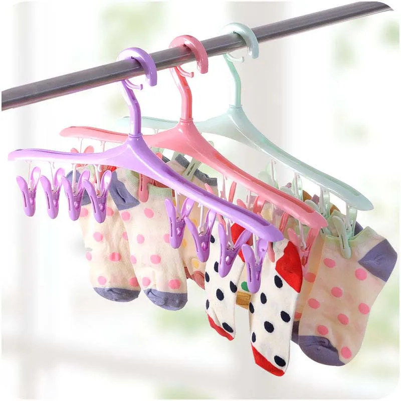 LASPERAL 1pc Plastic Storage Drain Hanger 8 Clamps Scoks Rack Holder Clothes Organizer Holder Closet Organizer Storage Shelves